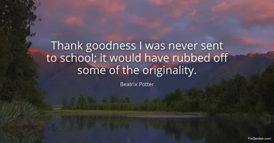 Potter, Beatrix. (2026, January 15). Thank goodness I was never sent to school; it would have rubbed off some of the originality. FixQuotes. https://fixquotes.com/quotes/thank-goodness-i-was-never-sent-to-school-it-40613/