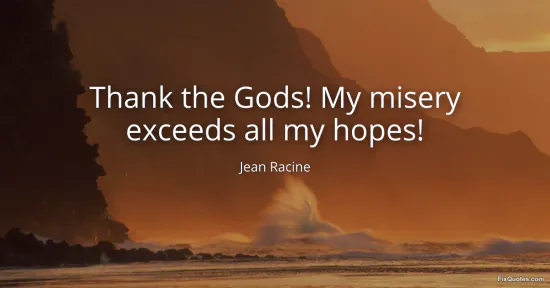Racine, Jean. (2026, January 16). Thank the Gods! My misery exceeds all my hopes! FixQuotes. https://fixquotes.com/quotes/thank-the-gods-my-misery-exceeds-all-my-hopes-85232/