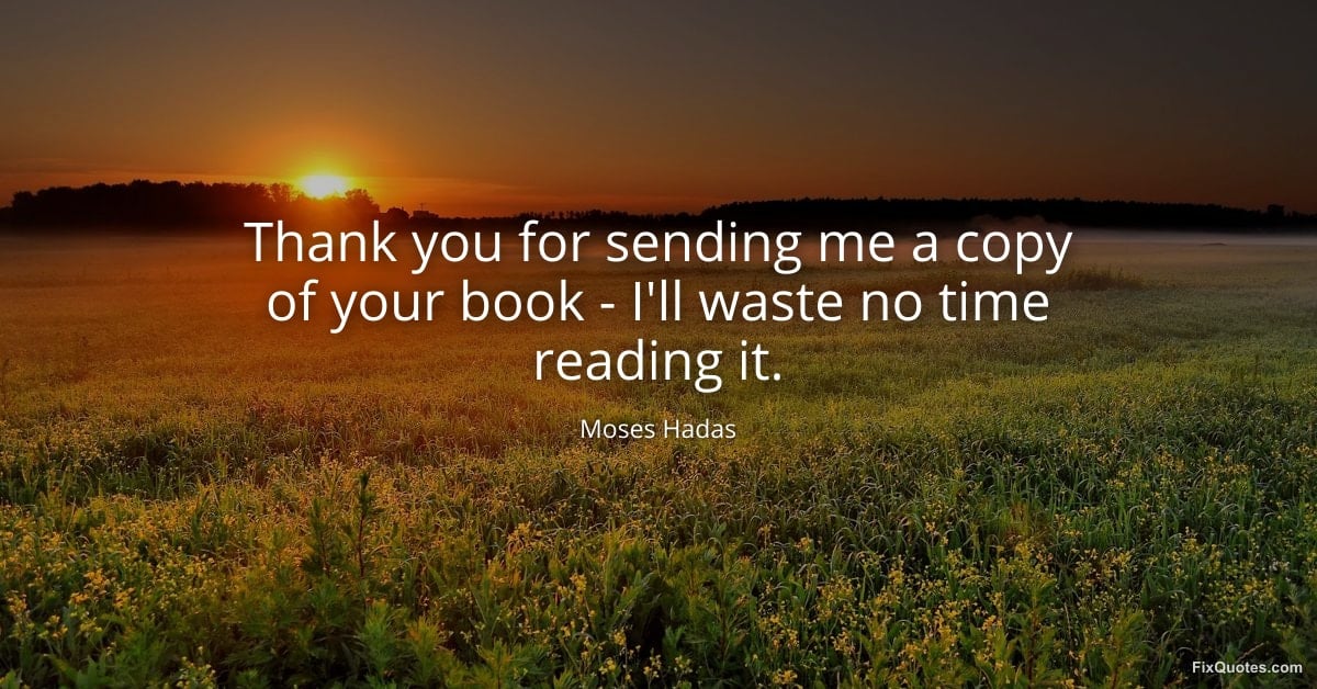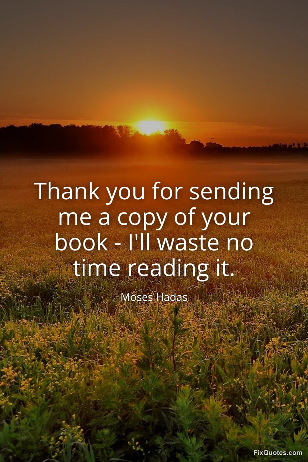 Hadas, Moses. (2026, January 16). Thank you for sending me a copy of your book - I'll waste no time reading it. FixQuotes. https://fixquotes.com/quotes/thank-you-for-sending-me-a-copy-of-your-book-104745/