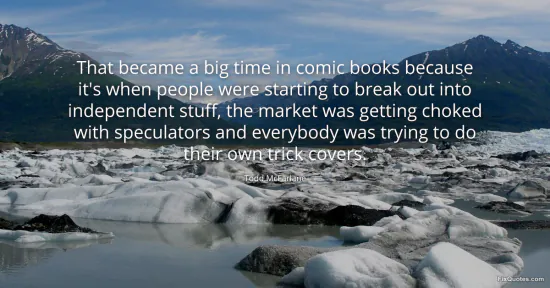 McFarlane, Todd. "That became a big time in comic books because it's when people were starting to break out into independent stuff, the market was getting choked with speculators and everybody was trying to do their own trick covers." FixQuotes. January 16, 2026. https://fixquotes.com/quotes/that-became-a-big-time-in-comic-books-because-its-98207/.