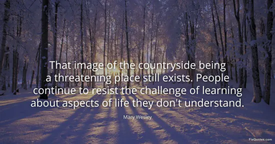 Wesley, Mary. (2026, January 17). That image of the countryside being a threatening place still exists. People continue to resist the challenge of learning about aspects of life they don't understand. FixQuotes. https://fixquotes.com/quotes/that-image-of-the-countryside-being-a-threatening-64602/