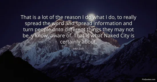 Zorn, John. (2026, January 17). That is a lot of the reason I do what I do, to really spread the word and spread information and turn people onto different things they may not be, y'know, aware of. That is what Naked City is certainly about. FixQuotes. https://fixquotes.com/quotes/that-is-a-lot-of-the-reason-i-do-what-i-do-to-80930/
