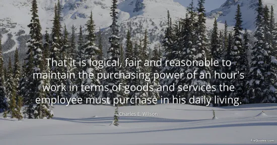 Wilson, Charles E. "That it is logical, fair and reasonable to maintain the purchasing power of an hour's work in terms of goods and services the employee must purchase in his daily living." FixQuotes. January 15, 2026. https://fixquotes.com/quotes/that-it-is-logical-fair-and-reasonable-to-142097/.