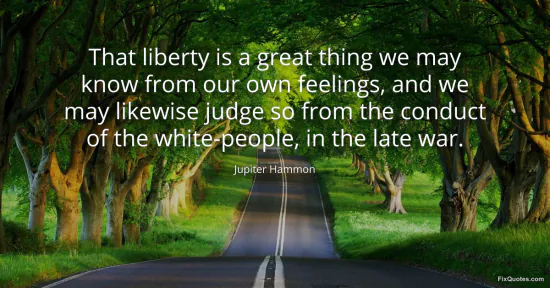 Hammon, Jupiter. (2026, January 15). That liberty is a great thing we may know from our own feelings, and we may likewise judge so from the conduct of the white-people, in the late war. FixQuotes. https://fixquotes.com/quotes/that-liberty-is-a-great-thing-we-may-know-from-165296/