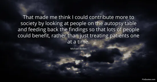 Baden, Michael. (2026, January 15). That made me think I could contribute more to society by looking at people on the autopsy table and feeding back the findings so that lots of people could benefit, rather than just treating patients one at a time. FixQuotes. https://fixquotes.com/quotes/that-made-me-think-i-could-contribute-more-to-114769/