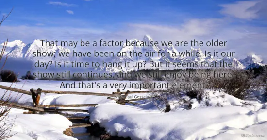 "That may be a factor because we are the older show; we have been on the air for a while. Is it our day? Is it time to hang it up? But it seems that the show still continues, and we still enjoy being here. And that's a very important element"