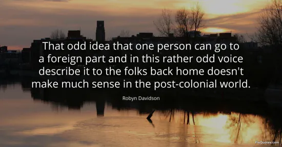 Davidson, Robyn. (2026, January 16). That odd idea that one person can go to a foreign part and in this rather odd voice describe it to the folks back home doesn't make much sense in the post-colonial world. FixQuotes. https://fixquotes.com/quotes/that-odd-idea-that-one-person-can-go-to-a-foreign-116277/