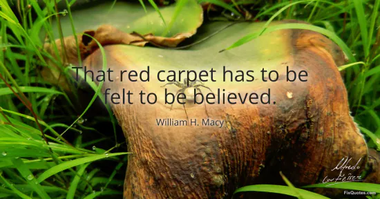 Macy, William H. "That red carpet has to be felt to be believed." FixQuotes. January 16, 2026. https://fixquotes.com/quotes/that-red-carpet-has-to-be-felt-to-be-believed-120895/.