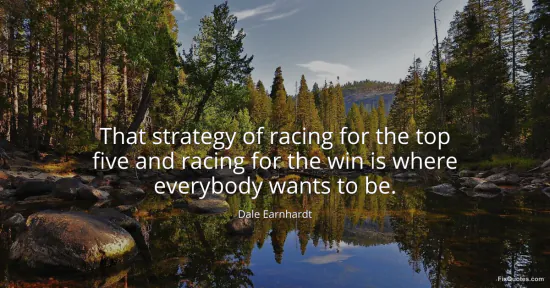 Earnhardt, Dale. "That strategy of racing for the top five and racing for the win is where everybody wants to be." FixQuotes. January 18, 2026. https://fixquotes.com/quotes/that-strategy-of-racing-for-the-top-five-and-20772/.