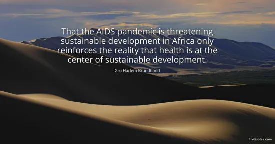 Brundtland, Gro Harlem. "That the AIDS pandemic is threatening sustainable development in Africa only reinforces the reality that health is at the center of sustainable development." FixQuotes. January 15, 2026. https://fixquotes.com/quotes/that-the-aids-pandemic-is-threatening-sustainable-32679/.