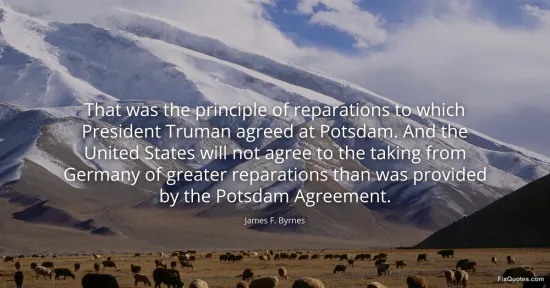 Byrnes, James F. "That was the principle of reparations to which President Truman agreed at Potsdam. And the United States will not agree to the taking from Germany of greater reparations than was provided by the Potsdam Agreement." FixQuotes. January 16, 2026. https://fixquotes.com/quotes/that-was-the-principle-of-reparations-to-which-85107/.