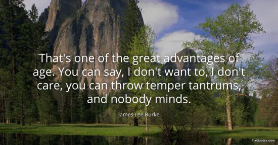 Burke, James Lee. (2026, January 17). That's one of the great advantages of age. You can say, I don't want to, I don't care, you can throw temper tantrums, and nobody minds. FixQuotes. https://fixquotes.com/quotes/thats-one-of-the-great-advantages-of-age-you-can-46792/