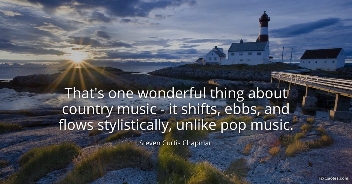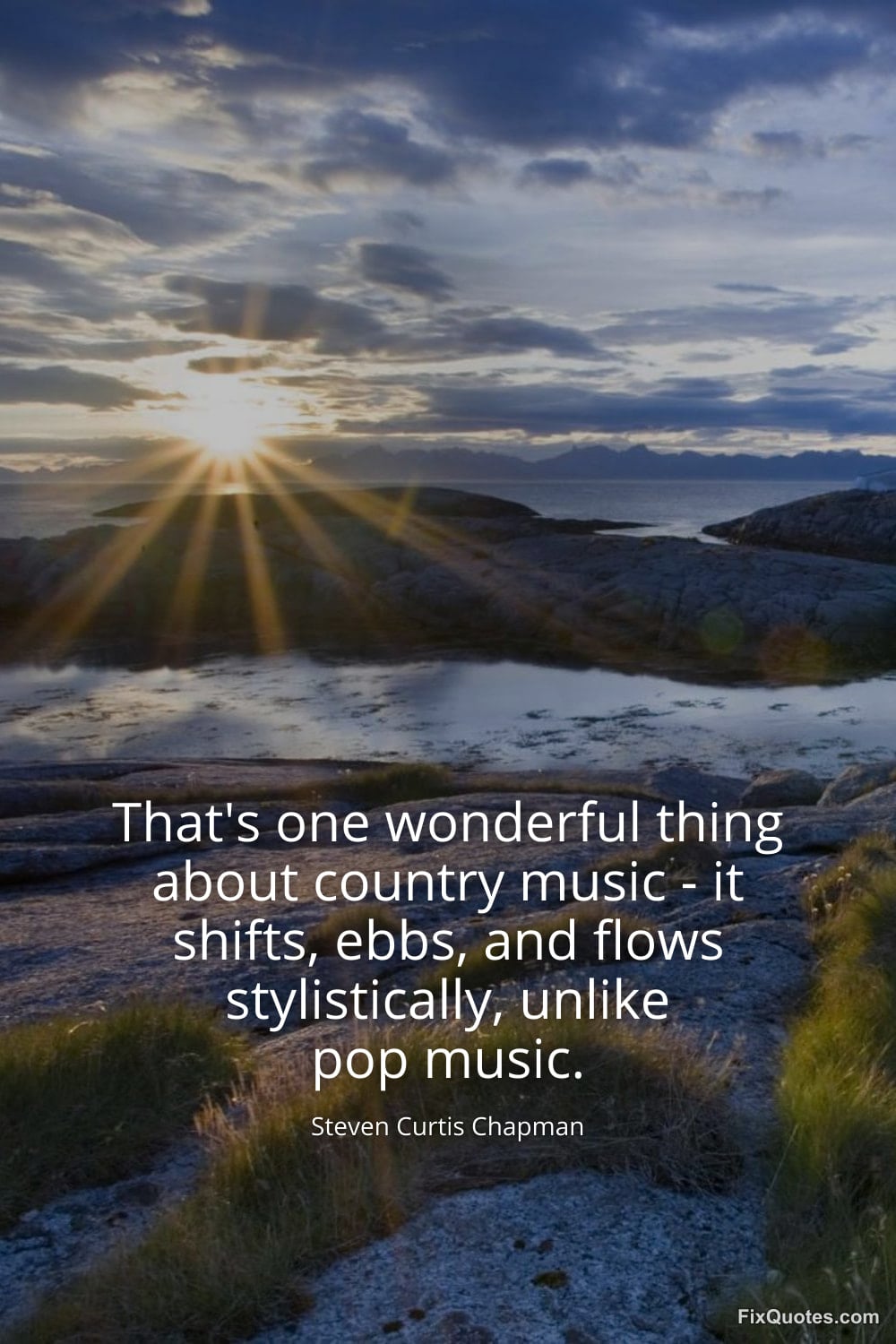 Chapman, Steven Curtis. (2026, January 16). That's one wonderful thing about country music - it shifts, ebbs, and flows stylistically, unlike pop music. FixQuotes. https://fixquotes.com/quotes/thats-one-wonderful-thing-about-country-music-137062/