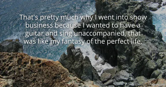 Jackson, Victoria. (2026, January 15). That's pretty much why I went into show business because I wanted to have a guitar and sing unaccompanied, that was like my fantasy of the perfect life. FixQuotes. https://fixquotes.com/quotes/thats-pretty-much-why-i-went-into-show-business-156945/