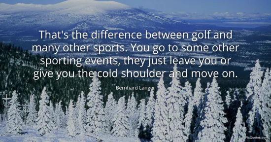 Langer, Bernhard. "That's the difference between golf and many other sports. You go to some other sporting events, they just leave you or give you the cold shoulder and move on." FixQuotes. January 17, 2026. https://fixquotes.com/quotes/thats-the-difference-between-golf-and-many-other-38688/.