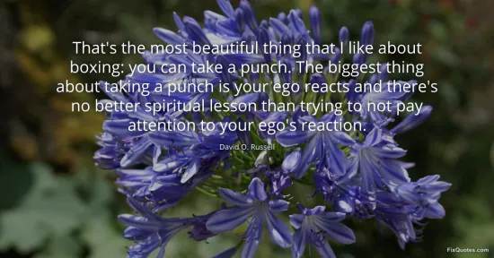 Russell, David O. "That's the most beautiful thing that I like about boxing: you can take a punch. The biggest thing about taking a punch is your ego reacts and there's no better spiritual lesson than trying to not pay attention to your ego's reaction." FixQuotes. January 17, 2026. https://fixquotes.com/quotes/thats-the-most-beautiful-thing-that-i-like-about-67454/.