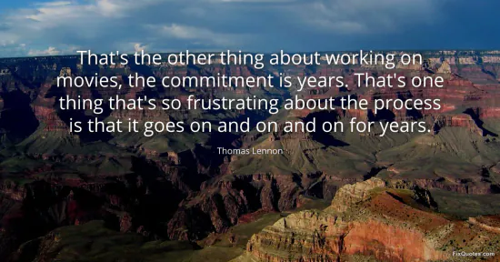 Lennon, Thomas. "That's the other thing about working on movies, the commitment is years. That's one thing that's so frustrating about the process is that it goes on and on and on for years." FixQuotes. January 15, 2026. https://fixquotes.com/quotes/thats-the-other-thing-about-working-on-movies-the-169132/.