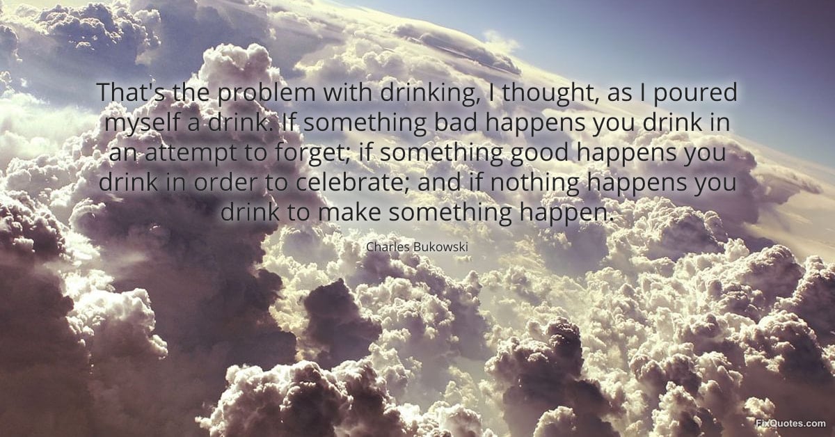 Bukowski, Charles. "That's the problem with drinking, I thought, as I poured myself a drink. If something bad happens you drink in an attempt to forget; if something good happens you drink in order to celebrate; and if nothing happens you drink to make something happen." FixQuotes. February 10, 2026. https://fixquotes.com/quotes/thats-the-problem-with-drinking-i-thought-as-i-185131/.