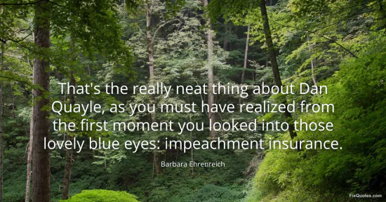 Ehrenreich, Barbara. (2026, January 16). That's the really neat thing about Dan Quayle, as you must have realized from the first moment you looked into those lovely blue eyes: impeachment insurance. FixQuotes. https://fixquotes.com/quotes/thats-the-really-neat-thing-about-dan-quayle-as-135951/