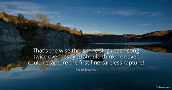 "That's the wise thrush; he sings each song twice over, lest you should think he never could recapture the first fine careless rapture!" FixQuotes, 15 Jan. 2026, https://fixquotes.com/quotes/thats-the-wise-thrush-he-sings-each-song-twice-11571/. Accessed 12 Feb. 2026.