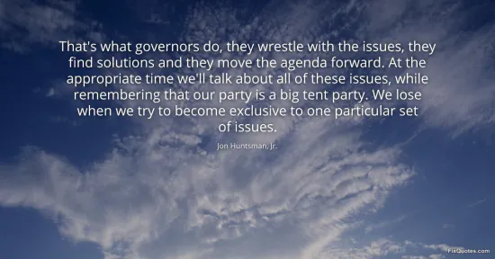 Governors are the most convenient alibi in national politics: they can claim the grime of governing while everyone else plays to the cameras. Huntsman leans hard into that contrast, positioning executive competence as a kind of moral credential. “Wrestle with the issues” and “find solutions” are verbs meant to smell like work boots - a rebuke to the ideological theater that often defines party primaries. He’s not selling a policy; he’s selling a posture: pragmatic, managerial, adult.