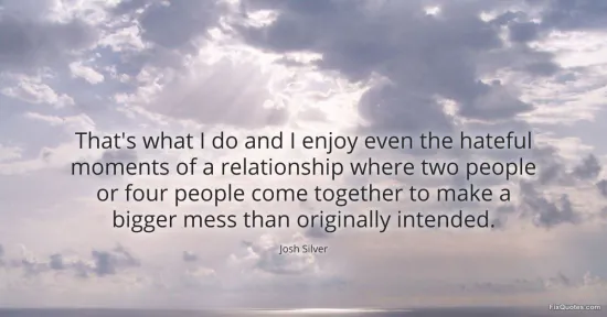 Silver, Josh. (2026, January 15). That's what I do and I enjoy even the hateful moments of a relationship where two people or four people come together to make a bigger mess than originally intended. FixQuotes. https://fixquotes.com/quotes/thats-what-i-do-and-i-enjoy-even-the-hateful-148800/