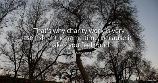 "That's why charity work is very selfish at the same time, because it makes you feel good"