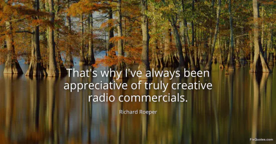 Roeper, Richard. (2026, January 17). That's why I've always been appreciative of truly creative radio commercials. FixQuotes. https://fixquotes.com/quotes/thats-why-ive-always-been-appreciative-of-truly-79479/