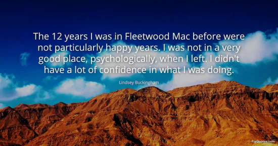 Buckingham, Lindsey. (2026, January 16). The 12 years I was in Fleetwood Mac before were not particularly happy years. I was not in a very good place, psychologically, when I left. I didn't have a lot of confidence in what I was doing. FixQuotes. https://fixquotes.com/quotes/the-12-years-i-was-in-fleetwood-mac-before-were-127505/
