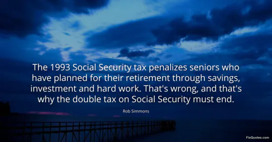 Simmons, Rob. "The 1993 Social Security tax penalizes seniors who have planned for their retirement through savings, investment and hard work. That's wrong, and that's why the double tax on Social Security must end." FixQuotes. January 16, 2026. https://fixquotes.com/quotes/the-1993-social-security-tax-penalizes-seniors-106107/.