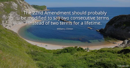 Clinton, William J. "The 22nd Amendment should probably be modified to say two consecutive terms instead of two terms for a lifetime." FixQuotes. January 15, 2026. https://fixquotes.com/quotes/the-22nd-amendment-should-probably-be-modified-to-151658/.