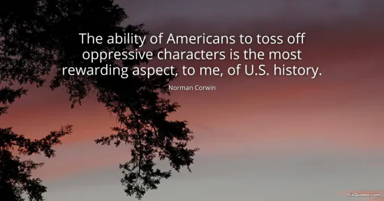 Corwin, Norman. "The ability of Americans to toss off oppressive characters is the most rewarding aspect, to me, of U.S. history." FixQuotes. January 15, 2026. https://fixquotes.com/quotes/the-ability-of-americans-to-toss-off-oppressive-143404/.
