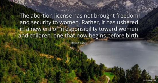 Casey, Robert. (2026, January 16). The abortion license has not brought freedom and security to women. Rather, it has ushered in a new era of irresponsibility toward women and children, one that now begins before birth. FixQuotes. https://fixquotes.com/quotes/the-abortion-license-has-not-brought-freedom-and-101670/
