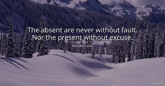 “The absent are never without fault. Nor the present without excuse” is Michael Caine at his most slyly British: a neat little social mechanism disguised as wisdom. It lands because it isn’t really about morality; it’s about power in a room. If you’re not there, you’re available for editing. Your motives can be guessed at, your tone invented, your mistakes inflated. Absence turns you into a character other people can rewrite to suit their needs.