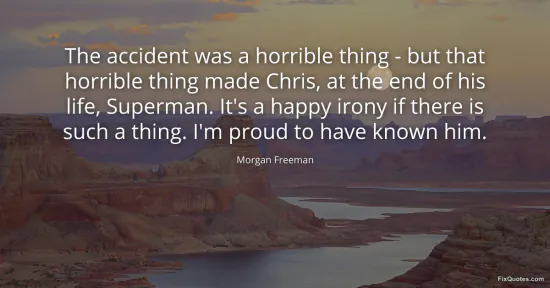 Freeman, Morgan. (2026, January 17). The accident was a horrible thing - but that horrible thing made Chris, at the end of his life, Superman. It's a happy irony if there is such a thing. I'm proud to have known him. FixQuotes. https://fixquotes.com/quotes/the-accident-was-a-horrible-thing-but-that-36274/