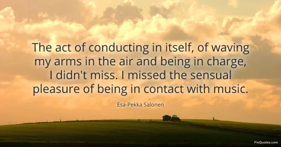 Salonen, Esa-Pekka. "The act of conducting in itself, of waving my arms in the air and being in charge, I didn't miss. I missed the sensual pleasure of being in contact with music." FixQuotes. January 17, 2026. https://fixquotes.com/quotes/the-act-of-conducting-in-itself-of-waving-my-arms-53577/.