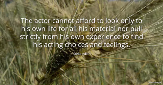 Adler, Stella. (2026, January 15). The actor cannot afford to look only to his own life for all his material nor pull strictly from his own experience to find his acting choices and feelings. FixQuotes. https://fixquotes.com/quotes/the-actor-cannot-afford-to-look-only-to-his-own-123526/