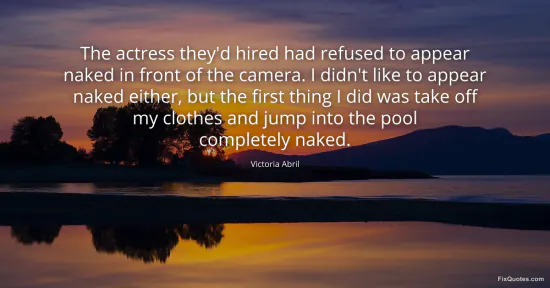 Abril, Victoria. (2026, January 16). The actress they'd hired had refused to appear naked in front of the camera. I didn't like to appear naked either, but the first thing I did was take off my clothes and jump into the pool completely naked. FixQuotes. https://fixquotes.com/quotes/the-actress-theyd-hired-had-refused-to-appear-89715/