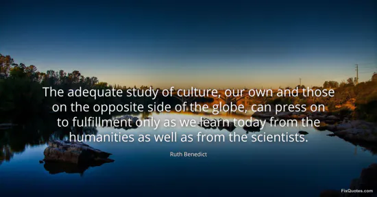 Benedict, Ruth. (2026, January 16). The adequate study of culture, our own and those on the opposite side of the globe, can press on to fulfillment only as we learn today from the humanities as well as from the scientists. FixQuotes. https://fixquotes.com/quotes/the-adequate-study-of-culture-our-own-and-those-89799/