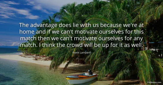 Lampard, Frank. "The advantage does lie with us because we're at home and if we can't motivate ourselves for this match then we can't motivate ourselves for any match. I think the crowd will be up for it as well." FixQuotes. January 17, 2026. https://fixquotes.com/quotes/the-advantage-does-lie-with-us-because-were-at-47957/.