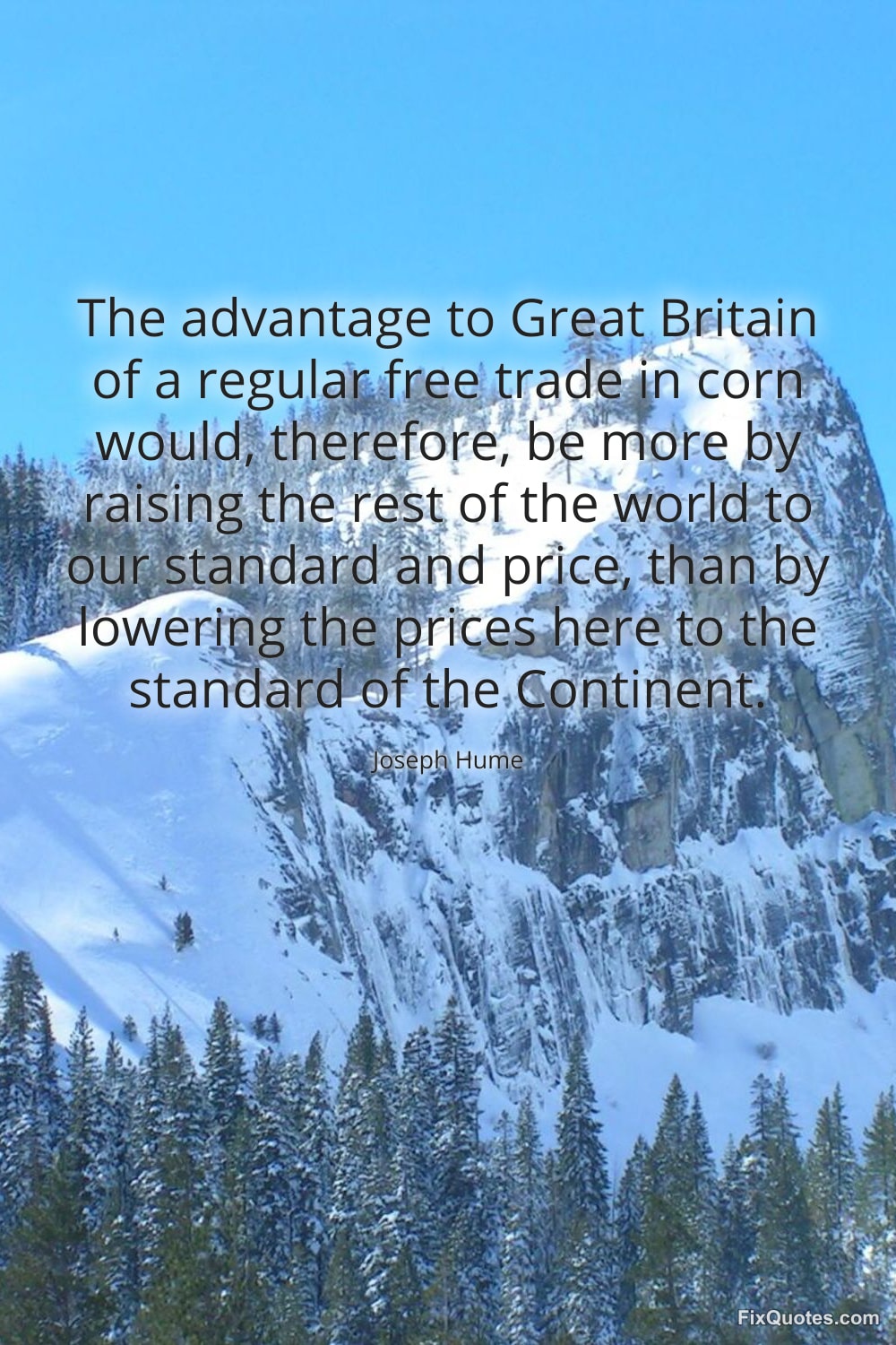 Hume, Joseph. "The advantage to Great Britain of a regular free trade in corn would, therefore, be more by raising the rest of the world to our standard and price, than by lowering the prices here to the standard of the Continent." FixQuotes. January 17, 2026. https://fixquotes.com/quotes/the-advantage-to-great-britain-of-a-regular-free-78349/.