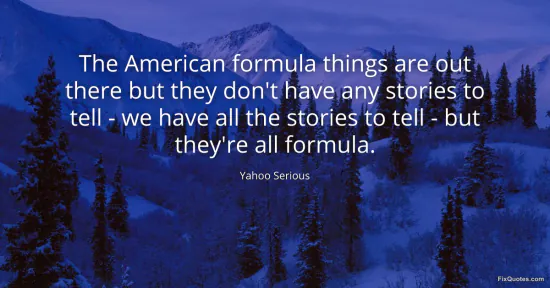 Serious, Yahoo. "The American formula things are out there but they don't have any stories to tell - we have all the stories to tell - but they're all formula." FixQuotes. January 16, 2026. https://fixquotes.com/quotes/the-american-formula-things-are-out-there-but-106281/.