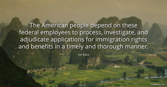 Baca, Joe. (2026, January 16). The American people depend on these federal employees to process, investigate, and adjudicate applications for immigration rights and benefits in a timely and thorough manner. FixQuotes. https://fixquotes.com/quotes/the-american-people-depend-on-these-federal-87373/