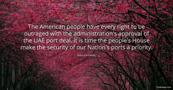 Carnahan, Russ. "The American people have every right to be outraged with the administration's approval of the UAE port deal. It is time the people's House make the security of our Nation's ports a priority." FixQuotes. January 16, 2026. https://fixquotes.com/quotes/the-american-people-have-every-right-to-be-129116/.