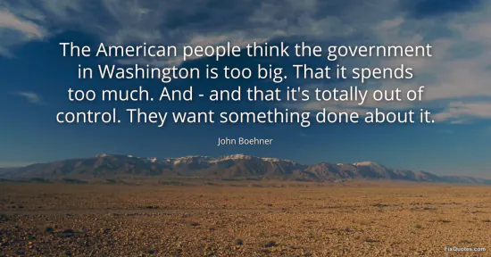 Boehner, John. "The American people think the government in Washington is too big. That it spends too much. And - and that it's totally out of control. They want something done about it." FixQuotes. January 17, 2026. https://fixquotes.com/quotes/the-american-people-think-the-government-in-51859/.
