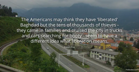 Fisk, Robert. "The Americans may think they have 'liberated' Baghdad but the tens of thousands of thieves - they came in families and cruised the city in trucks and cars searching for booty - seem to have a different idea what liberation means." FixQuotes. January 16, 2026. https://fixquotes.com/quotes/the-americans-may-think-they-have-liberated-128389/.
