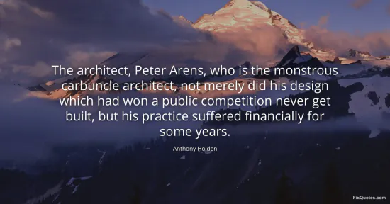 Holden, Anthony. "The architect, Peter Arens, who is the monstrous carbuncle architect, not merely did his design which had won a public competition never get built, but his practice suffered financially for some years." FixQuotes. February 20, 2026. https://fixquotes.com/quotes/the-architect-peter-arens-who-is-the-monstrous-12324/.