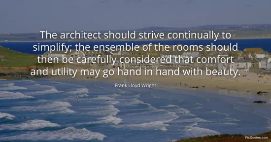 Wright, Frank Lloyd. "The architect should strive continually to simplify; the ensemble of the rooms should then be carefully considered that comfort and utility may go hand in hand with beauty." FixQuotes. January 15, 2026. https://fixquotes.com/quotes/the-architect-should-strive-continually-to-6870/.