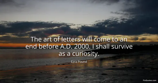 Pound, Ezra. "The art of letters will come to an end before A.D. 2000. I shall survive as a curiosity." FixQuotes. January 17, 2026. https://fixquotes.com/quotes/the-art-of-letters-will-come-to-an-end-before-ad-47330/.