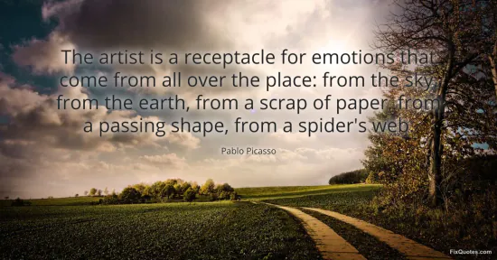 Picasso, Pablo. "The artist is a receptacle for emotions that come from all over the place: from the sky, from the earth, from a scrap of paper, from a passing shape, from a spider's web." FixQuotes. January 15, 2026. https://fixquotes.com/quotes/the-artist-is-a-receptacle-for-emotions-that-come-41844/.